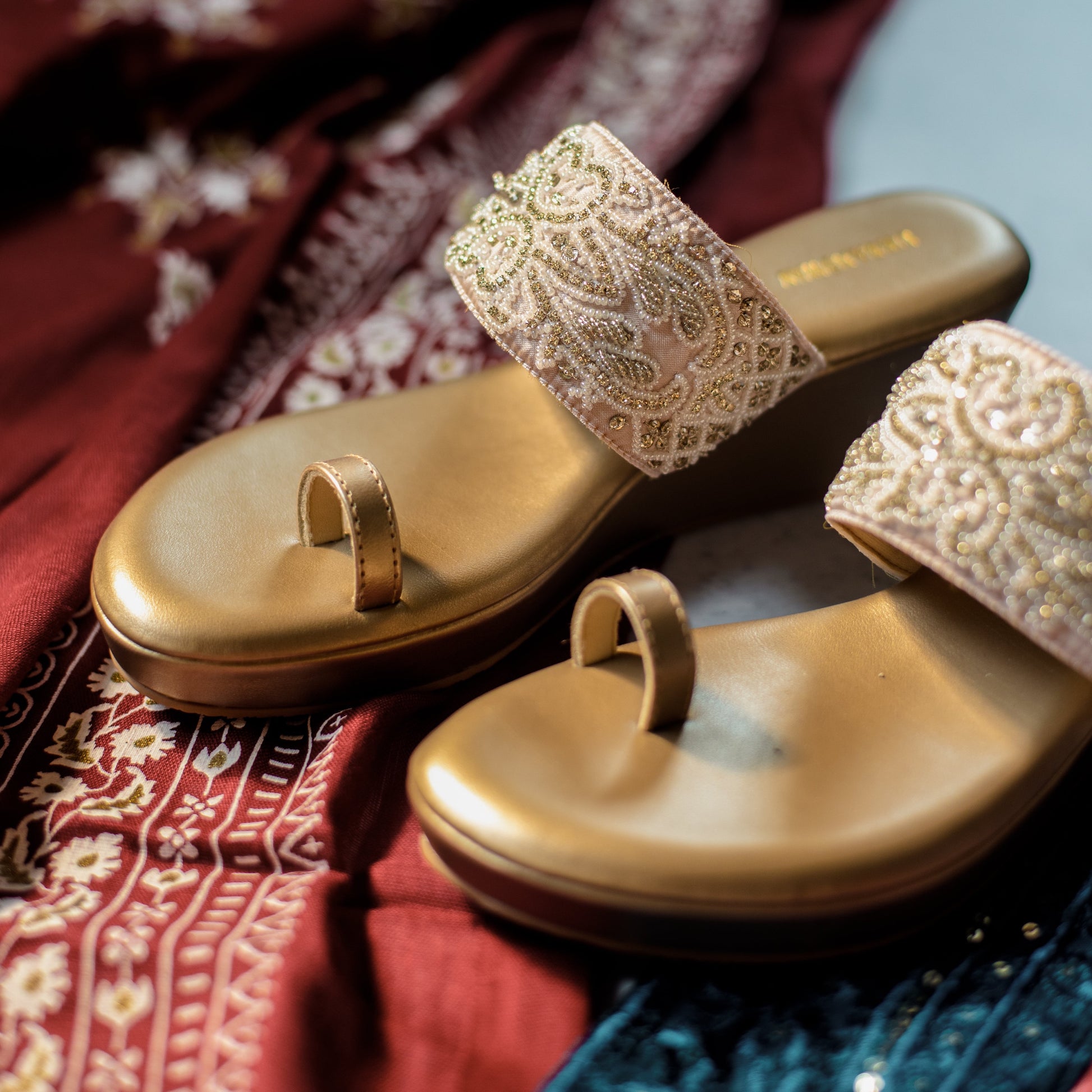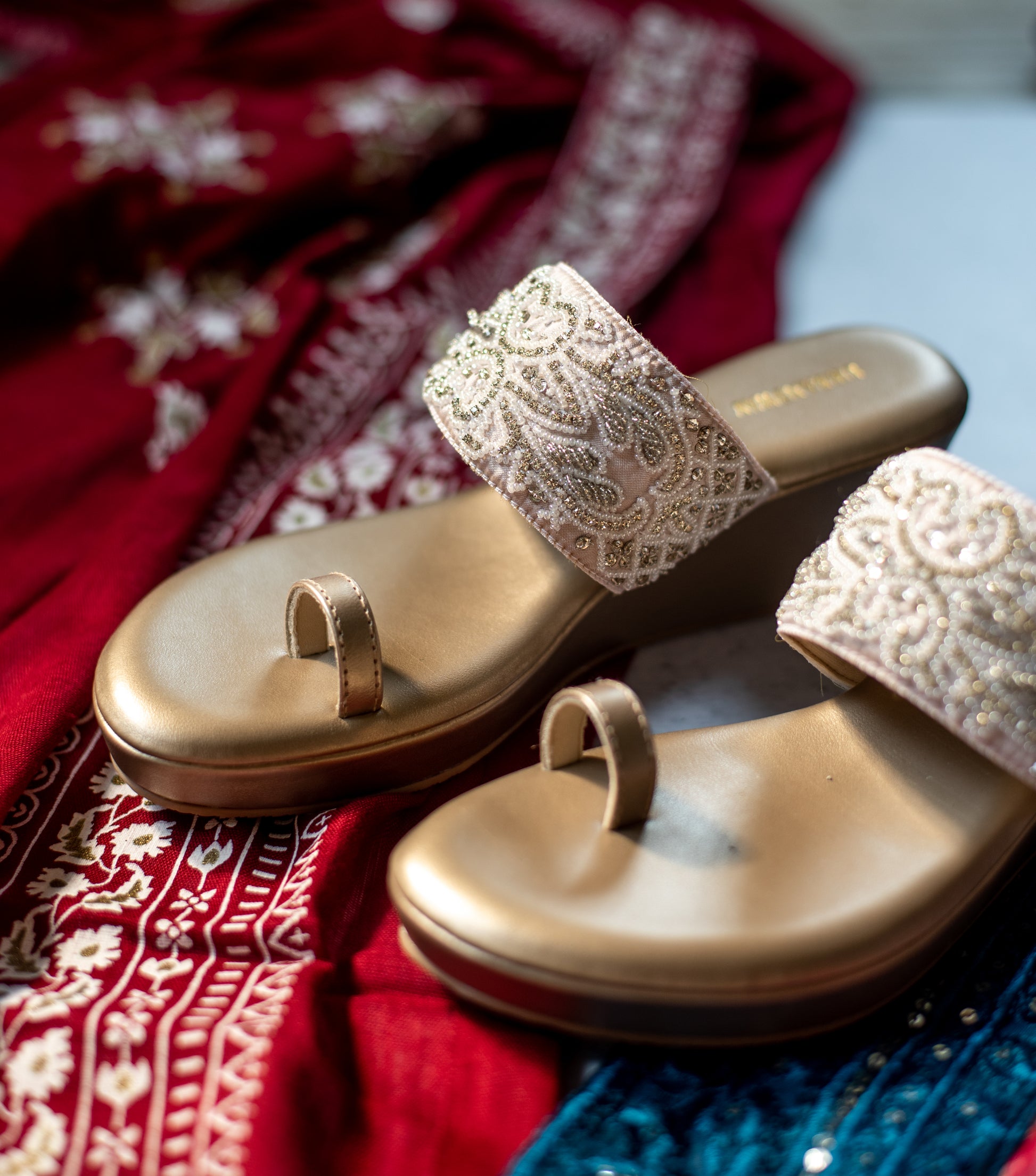 Please store the pair in the non-woven dust free bag provided. Please keep the pair dry and away from moisture. If exposed, dry them well in direct sunlight before use.ย In case if your feet hurt, you may apply a light layer of mustard oil for a few hours inside the lining of the pair.ย