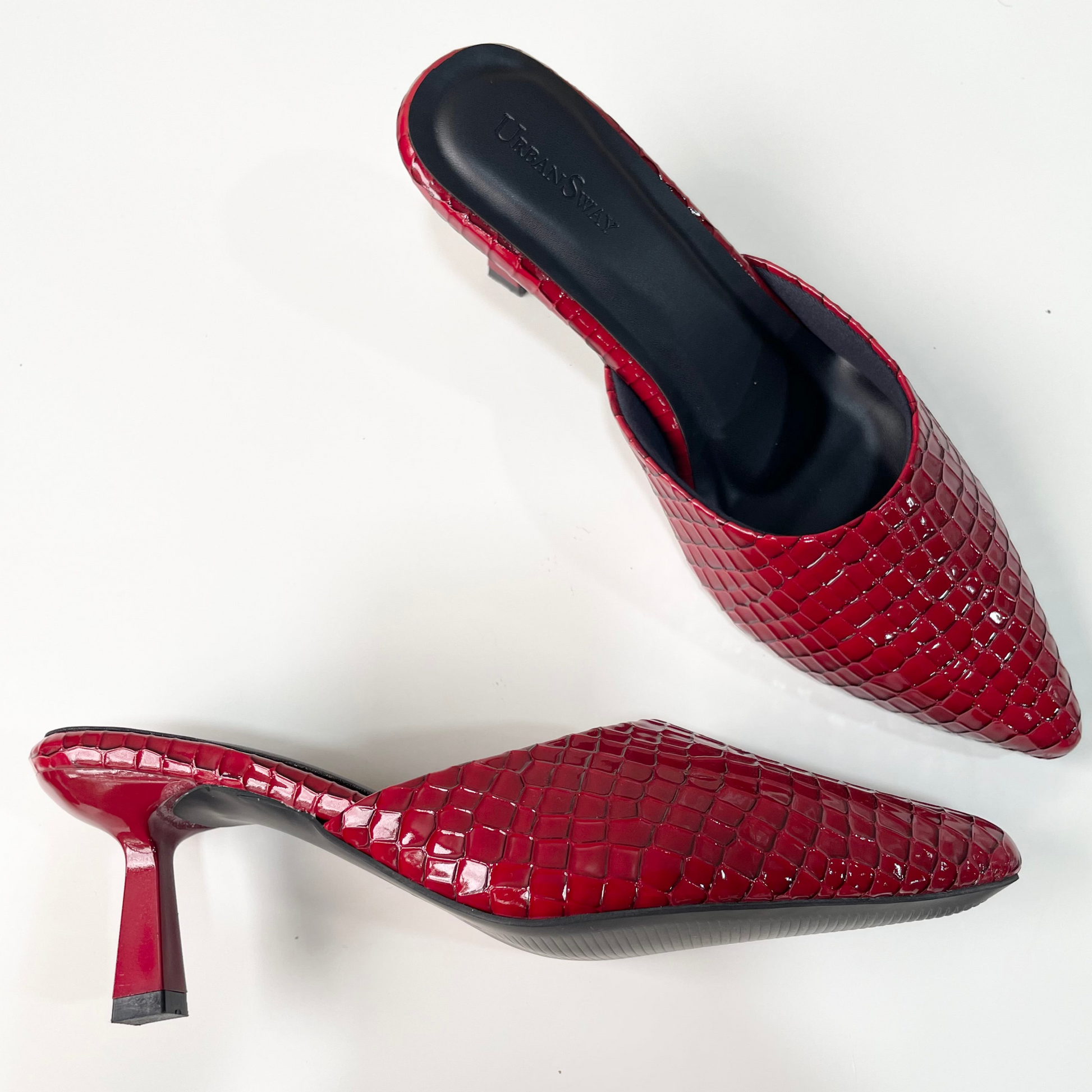 Make a bold statement with our Cherry Pop Mules! These red hot kitten heels with a 2.75-inch height are designed to make your legs the star of the show. Sleek, sexy, and totally irresistible!