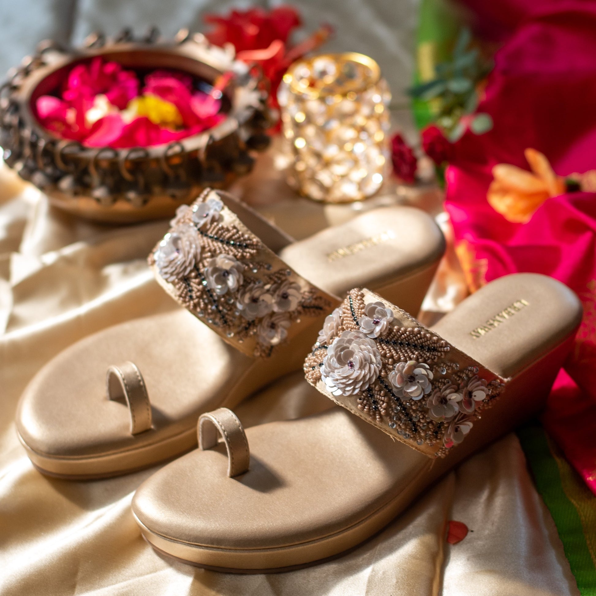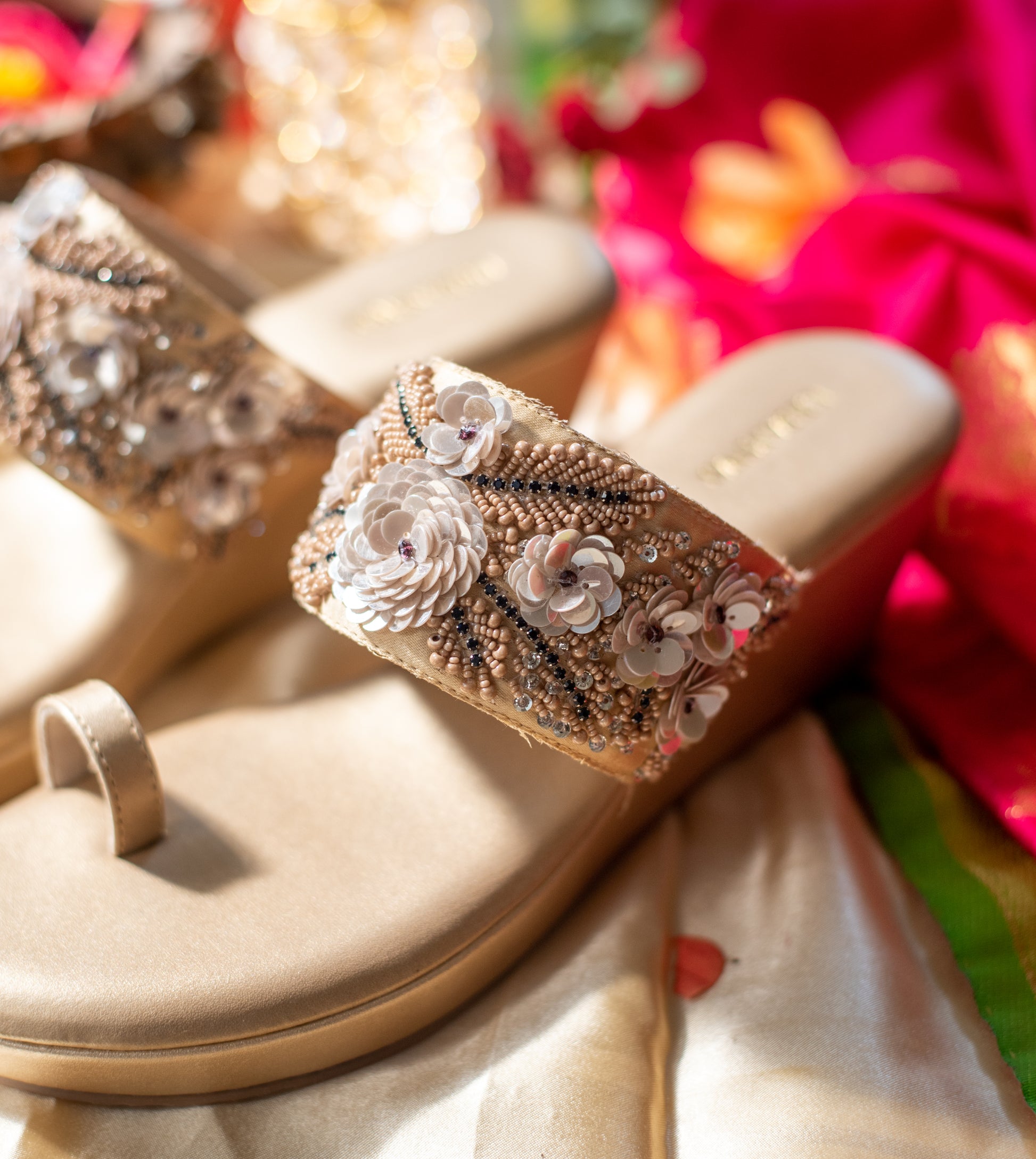 Please store the pair in the non-woven dust free bag provided. Please keep the pair dry and away from moisture. If exposed, dry them well in direct sunlight before use.ย In case if your feet hurt, you may apply a light layer of mustard oil for a few hours inside the lining of the pair.ย