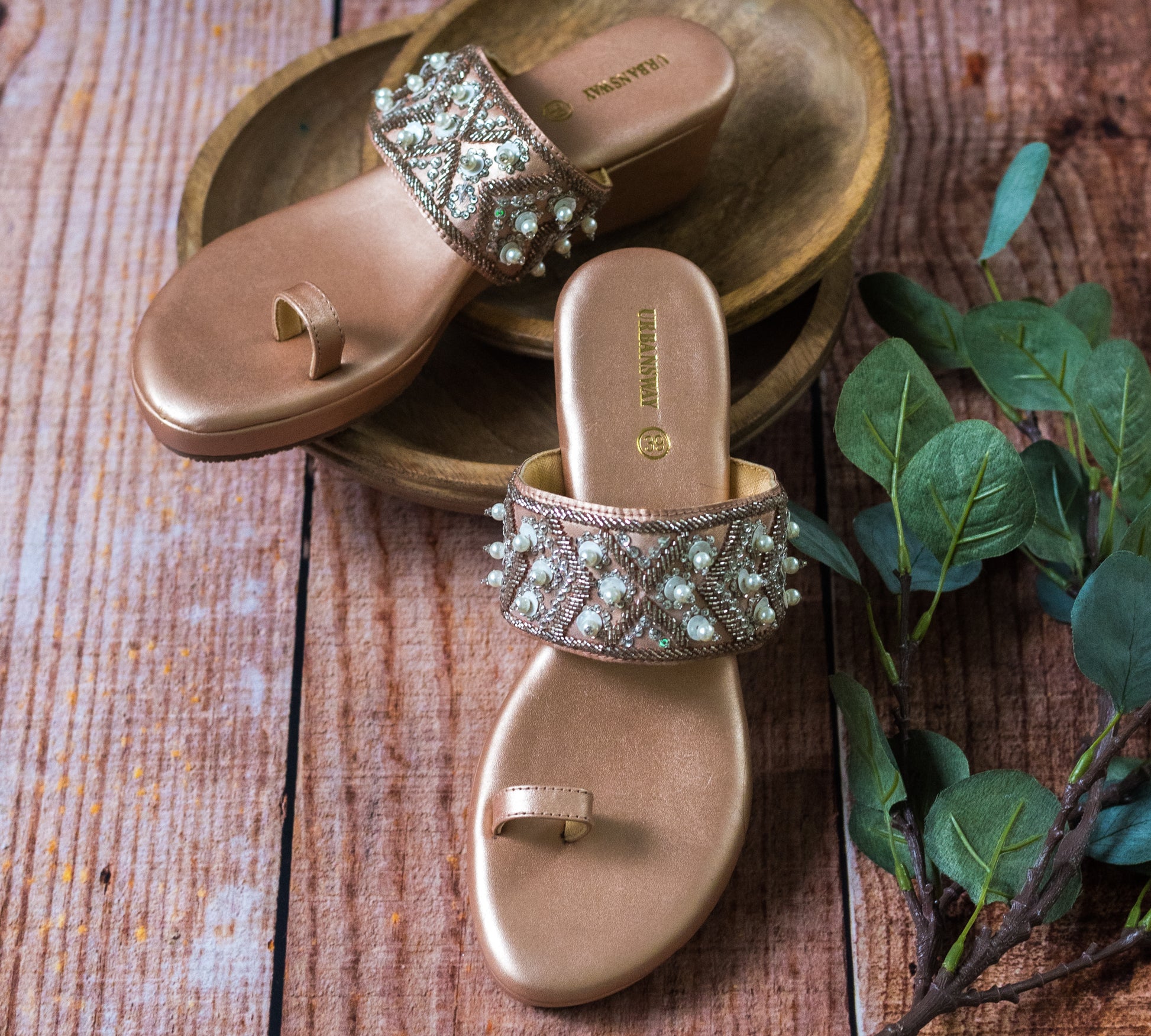 Please store the pair in the non-woven dust free bag provided. Please keep the pair dry and away from moisture. If exposed, dry them well in direct sunlight before use.ย In case if your feet hurt, you may apply a light layer of mustard oil for a few hours inside the lining of the pair.ย